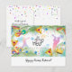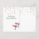 Happy Purim greeting card. Translation from Hebrew: Happy Purim! Purim Jewish Holiday poster with stars of David, traditional Hamantaschen cookies, gragger toy noisemaker, balloons, musicians, masks, Purim basket on festive confetti background. Wish a great Purim celebration. Carnival, Masquerade, Festival, Kids Party, Israel. Invitations & Stationery > Greeting Cards > Holiday & Seasonal Gifts Card. Design with text template. Personalise them by adding name or wishes text.