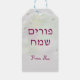 A vibrant and cheerful design embodying the joyful spirit of the Purim holiday. The illustration features a classic, friendly clown with colorful hair and a polka-dot suit, holding a wicker basket overflowing with Hamantaschen and traditional sweets. The festive Hebrew inscription "פורים שמח" (Happy Purim) appears in a deep burgundy tone. The painterly style is rich in detail, conveying celebration and happiness, making it perfect for Mishloach Manot packaging, greeting cards, and Purim party decorations.
