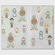 A vibrant, rich, and joyful design featuring a wide variety of illustrated children characters in traditional and creative Purim costumes. The collection includes festive clowns, bride and groom, queen, construction worker, Shtetl characters, and more, all drawn in a soft and sweet Kawaii style. The design conveys a spirit of community, joy, and festive Jewish tradition. These illustrations are perfect for Mishloach Manot wrapping paper, sticker sheets, holiday party invitations, and any Purim-themed craft items.