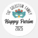Purim owl mask masquerade costume Family Name Classic Round Sticker
