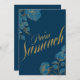 Beautiful blue floral and gold Purim Sameach card for mishloach manot.