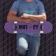 purple complete board with imprint MOI - cy incl. axles, wheels and ball bearings.