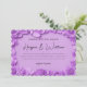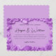 Modern barbiecore-inspired horisontal wedding invitation featuring a purple monochromatic 3d simulated papercut flower frame