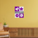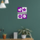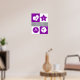 Personalised gymnastics poster with purple and white squares filled with gymnastics silhouettes of the opposite colour. It also has a easy to customise text field to add a name before you order!