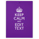 Your personalised Keep Calm saying on a fine custom deep purple accent colour style decor. A personalised Keep Calm style saying on a one of a kind gift. Humourous or whimsical try on your creative words on two editable lines of text. Remember to use CAPITAL letters for best results.