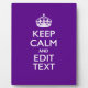 Purple Accent Keep Calm And Your Text Easily Plaque