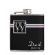 Black flask with changeable accent colour and monogram. Personalise monogram and text as needed and change background colour to compliment your wedding.