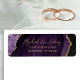 This elegant modern wedding invitation return address label features a purple watercolor agate background trimmed with faux gold glitter. The customizable text combines gold-colored handwriting script and copperplate fonts.