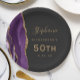 Purple Agate Marble Gold Dark 50th Birthday Paper Plate
