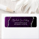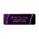 This elegant modern wedding invitation return address label features a purple watercolor agate background trimmed with faux silver glitter. The customizable text combines silver gray handwriting script and copperplate fonts.
