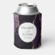purple and Gold Agate Wedding Can Cooler. Faux gold glitter. Script font highlights with easy to read serif name font. Easy to adjust for your own wedding needs. Personalised wedding party coasters.