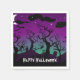 Purple and aqua haunted graveyard Halloween paper napkin. A haunted cemetery in purple and aqua blue with gravestones, spooky trees, a witch, an owl, bats and your text "Happy Halloween" are the elements of this Halloween paper napkin.