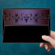 Elegant black invitation and announcement envelope with purple plum floral vine on the back flap.