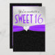Purple and Black Floral Damask Diamond Heart Invitation