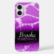 Bright animal patterned iphone case in black and bold purple hues. Personalise this item with your full name. This example currently reads: Brooke Marshall. This original pattern is based on the patterning found on a giraffe with a halftone moiré dot gain pattern overlay. Original art and design by Sarah Trett for www.mylittleeden.com on zazzle.