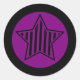 A cool design featuring a black striped star in the centre of a purple background enclosed in a black outline. A design inspired by roller derby jammers!