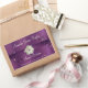 Beautiful deep purple with faux satin ribbon. White flower with a bit of glitz and sparkle. Personalise with your text to create a label for Wedding, Anniversary, Engagement Wine Bottles.