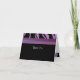 A modern design featuring a black background accented by a border of purple and black zebra stripes across the top. A shaded purple band accents it.The words 'thank you' can be changed as desired. Inside message also!