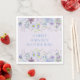These pretty baby shower napkins feature a watercolor wildflower garden at the top and bottom in shades of purple and blue with green leaves. There's a lavender background and it says "A sweet baby boy is on the way" in a coordinating blue. These will look so pretty on the tables at your baby shower!