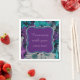 Bright and bold photographic art of blue and purple flowers on customised cocktail napkins.