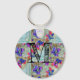 Purple and Blue Flowers Squares Zigzags Key Ring