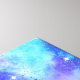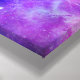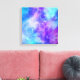 Canvas print with a cosmic abstract background. Swirling vibrant colours of light blue, pink and purple. White stars scattered around.