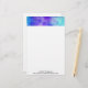 Stationery with a cosmic abstract background. Swirling vibrant colours of light blue, pink and purple. White stars scattered around.