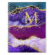 This notebook features an elegant and glamourous purple and teal blue agate marble background with faux gold glitter accents. The monogram combines handwritten script and modern sans serif fonts for a classy and sophisticated look. This will make the ideal gift as it can be customised with a name and initial. The sequins and distressed texture creates the perfect blend of chic and grunge.