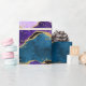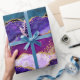 This elegant and glamourous wrapping paper is versatile and can be used for giving gifts or art and craft projects. It is ideal for any occasion such as birthdays, weddings, bridal showers, baby showers, anniversaries or general gifts. The design features a purple and teal blue agate marble background with faux gold glitter accents. The sequins and distressed texture creates the perfect blend of chic and grunge.