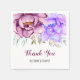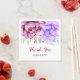 Purple, blue watercolor flowers floral wedding paper napkins. A pretty wedding design that includes watercolor flowers in tones of purple and blue and leaves. The phrase "Thank You" is in script typography.