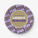 Purple and Bronze Gold Personalised Graduation Paper Plates - Repeating Background Collection