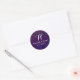 This elegant yet modern wedding invitation suite has a dark purple watercolor background with a scattering of faux gold glitter flecks cascading from the top and white text.