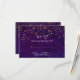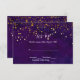This elegant yet modern wedding invitation suite has a dark purple watercolor background with a scattering of faux gold glitter flecks cascading from the top and white text.