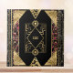 This design features some bold shapes and motifs, in shades of purple and gold on black, that were common in the Art Deco style, such as strong angular and trapezoidal shapes. Art Deco was a popular design style of the 1920s and '30s that featured sleek geometric motifs and stylised forms, often created with man-made or futuristic materials. This style is sometimes called Arts Décoratifs, based on its roots in the Paris Exposition Internationale des Art Decoratifs et Industriels et Modernes in 1925. Please note that this design might appear to have depth, with recesses or bevels, but it's just a flat design.