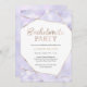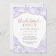 Invite your guests to celebrate with the bachelorette with this lovely purple and gold bachelorette party invitation with a geometric marble pattern.