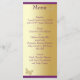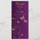 This purple and gold floral menu card has purple and FAUX gold glitter (simulated) butterflies and flowers on it that matches the wedding invitation shown below. It is designed on a rack card with a glossy front, and matte finish on the back. If you would like a menu card on invitation paper to match your invitations, or if you have any requests for additional items or changes, please email niteowlstudio@gmail.com with your request.