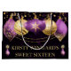 Elegant Purple and Gold Christmas Baubles design with dark bokeh background.