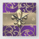 Purple and Gold Filigree Swirls Fleur de Lis Square Wall Clock