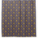A shower curtain with a seamless repeating purple and gold quatrefoil pattern with fleur de lys symbol (lilies).