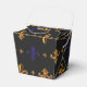 Black take out-style favour box with an image of purple and gold fleurs de lis. See the entire Mardi Gras Favour Box collection in the PARTY FAVORS section.
