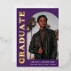 Stylish and trendy graduation announcement featuring the graduate's photo on the front with an offset arch photo frame. "Graduate" is displayed in bold gold foil lettering on a purple background. Personalize the front of the arch photo graduation announcement by adding the graduate's name, school, and graduation year. The card reverses to display an additional 3 photos with space for custom text such as future college plans, career plans, graduation party details, etc. The gold foil graduation announcement is perfect for both high school and college graduates.