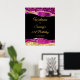 This elegant and glamourous birthday party welcome sign features purple and gold faux glitter glam tears on a black background. The text combines handwritten script and modern sans serif fonts for a classy and sophisticated look.