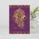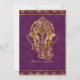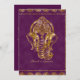 This elegant design, called Purple and Gold Glitter Indian Wedding, has a purple background. On the front there is a gold glitter style border design with Lord Genesha in the centre to ward off any obstacles. Towards the bottom is the couple's name in gold. The back has a purple background with your text in gold. This set has invitations, save the date cards, response cards, thank you cards, table number cards, wine labels, wedding programs, and many more day-of wedding stationery pieces, favours, and gifts to coordinate. All elements are printed on our high quality products, they do not include any real gold, jewels, embossing, or other textile elements. All designs are copyright Noteable Expressions, Inc. All rights reserved.