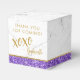 Purple Glitter and Gold with White Marble Modern Birthday, Mitzvah, Shower, or Party Favour Box personalised with custom thank you message and your name. The simple and elegant design is fun for a birthday, bat mitzvah, Quinceañera, wedding, bridal shower, baby shower or bachelorette party.