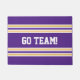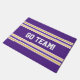 This bold purple door mat, featuring gold coloured stripes, adds a pop of colour. Customise with your name or message.