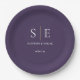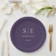 This chic minimalist purple and gold wedding paper plate can be personalised with your monogram initials, names and special date. Designed by Thisisnotme©