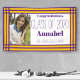 Celebrate your graduate with this Purple and Gold One Photo Geometric Grad Banner. Personalise with your graduate's photo, name, school and class year. This class of 2024 school colours banner features feminine font and a decorative purple and gold border.