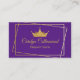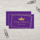 Elegant beauty pageant coach business card done in purple, with a modern gold frame and gold tone crown. Personalise all the text for your pageant business.