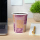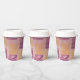 These paper cups feature a soft pretty gel print made of purple and gold inked squares.