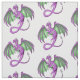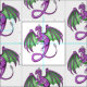 Purple dragon with green wings suspended ready for flight. The tail is a partial figure eight, such as a lemniscate, to indicate the dragon's magical powers.